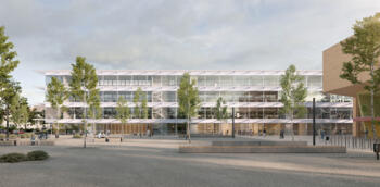 Die Ausstellung 'Die ganze Stadt - Hamburger Wettbewerbe und Verfahren 2017-2023' zeigt unser Projekt 087_Bezirksamt Hamburg Harburg, zusammen mit FAM Architekten, Wettbewerb 2021, 3. Preis.