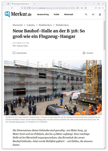Am 22.11.2023 hat der Markt Holzkirchen zum Richtfest auf der Baustelle zum Bauhof in Holzkirchen eingeladen.