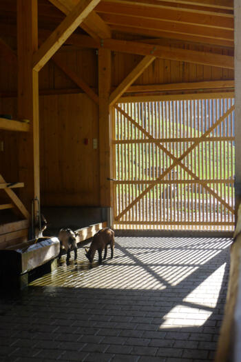 Hofkäserei, Hofladen, Reifekeller, Melkraum, Schlachtraum, Ziegenstall, Heubergehalle